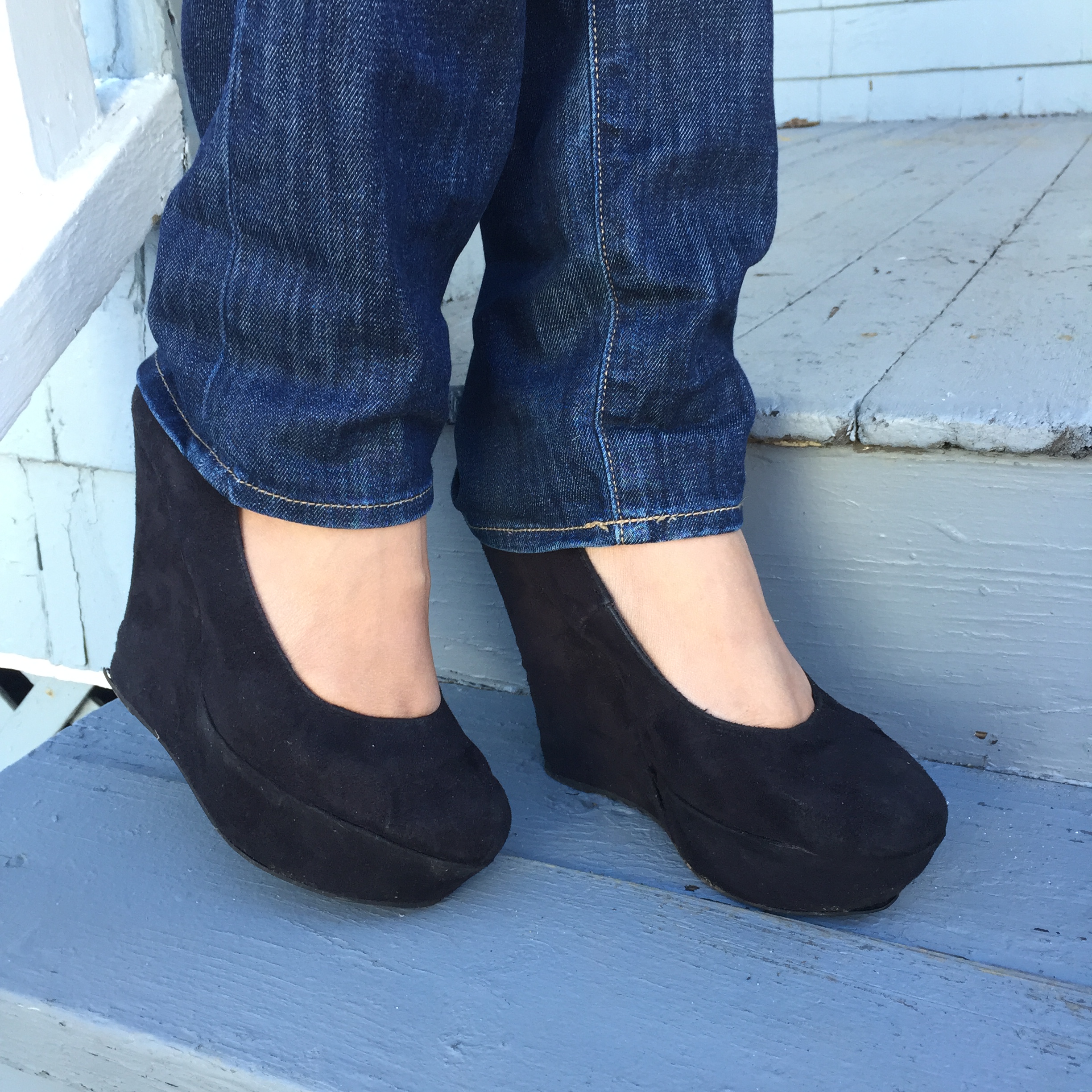 I love my black wedge platform shoes! They feel like really tall sneakers that I can run around in all day. A pair like these are versatile and can be paired with a casual look or with a dressier style for a night out. 2 Days to go! Tune in for the full outfit post on my official launch day. Thanks for stopping by and reading.