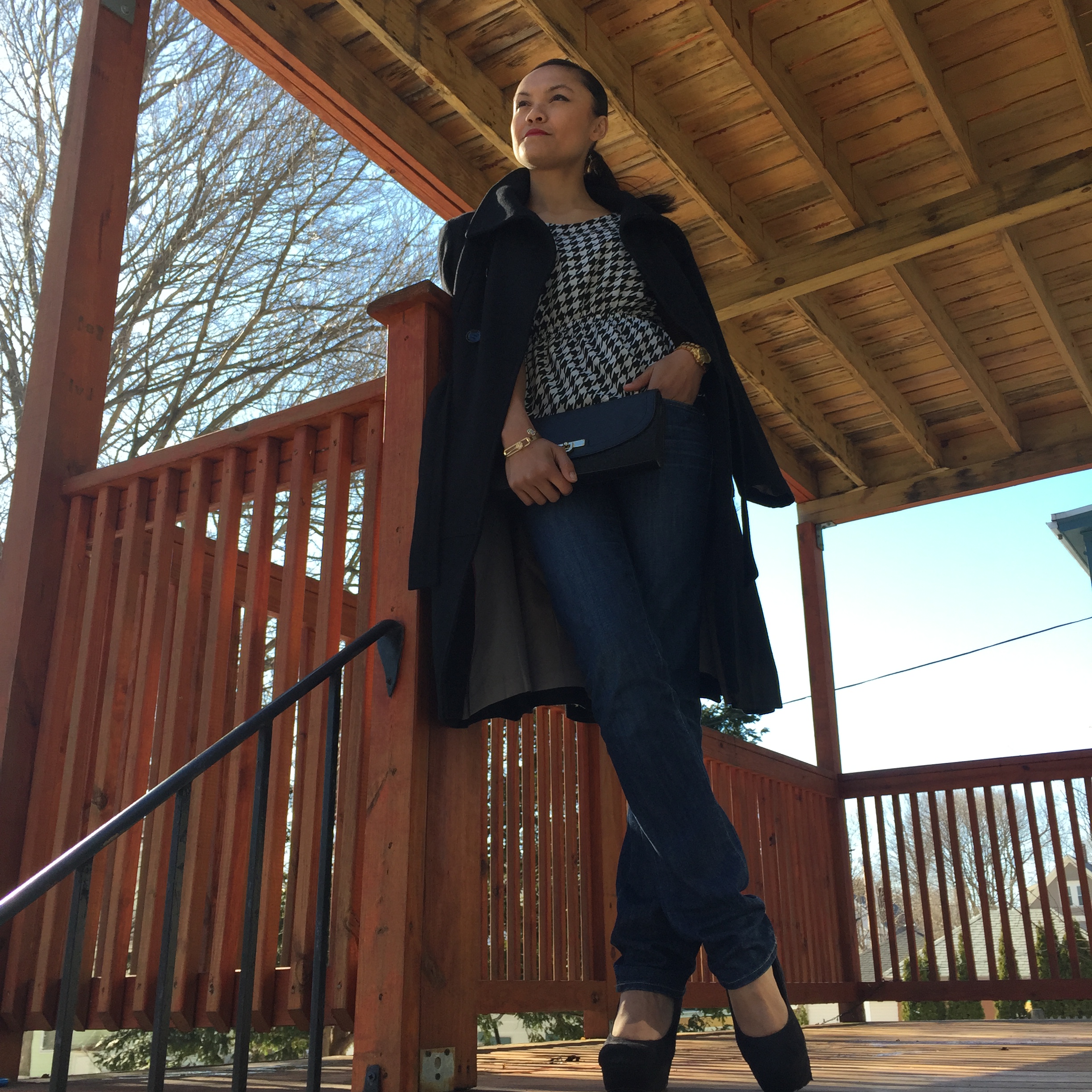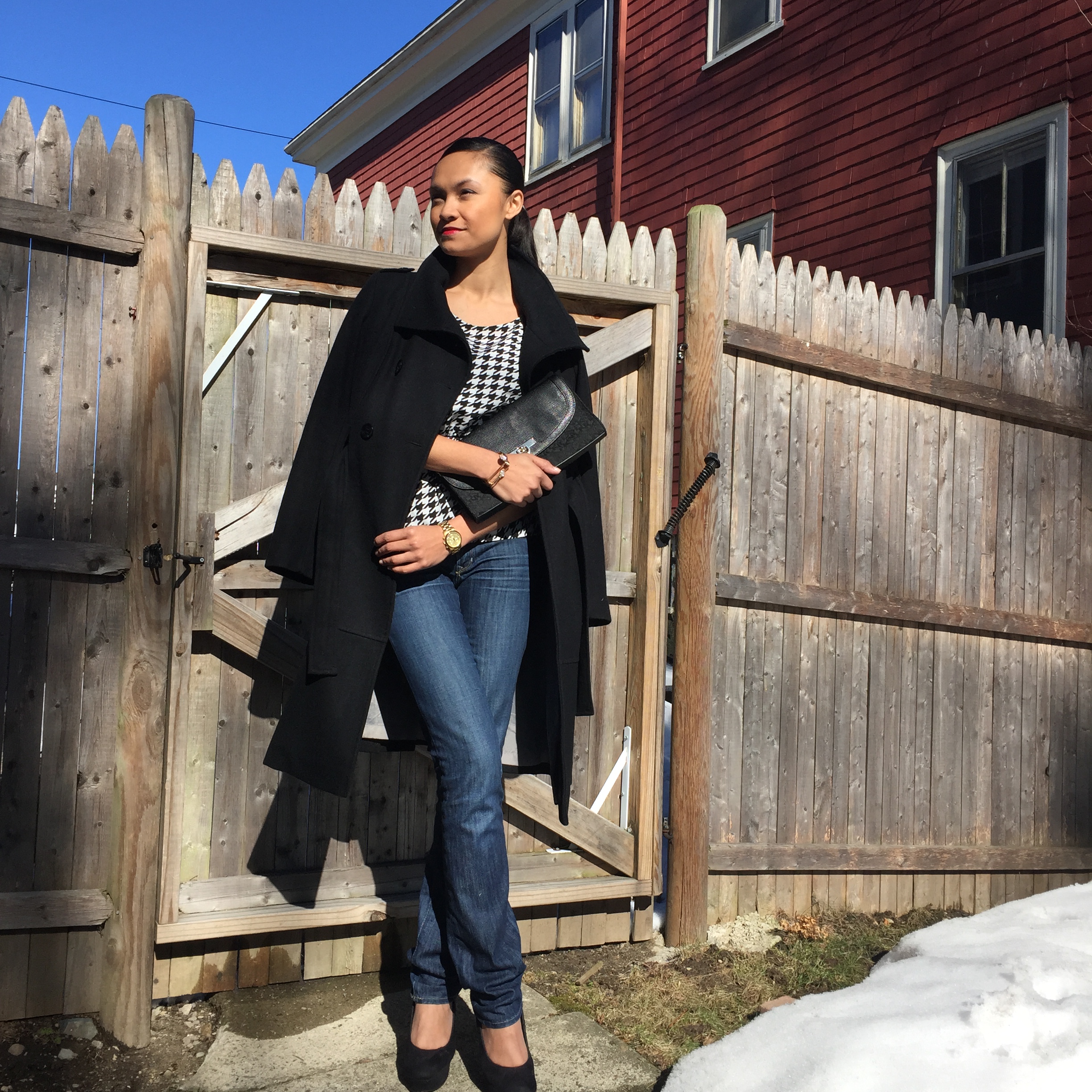 Spring is in the air but in Boston there is some leftover snow. This peplum shirt was a fun yet perfect option for Sunday brunch with friends and a classic pleated black wool coat was a must. Paired with red lipstick, the outfit  was a perfect complement to my pomegranate mimosa. Cheers!