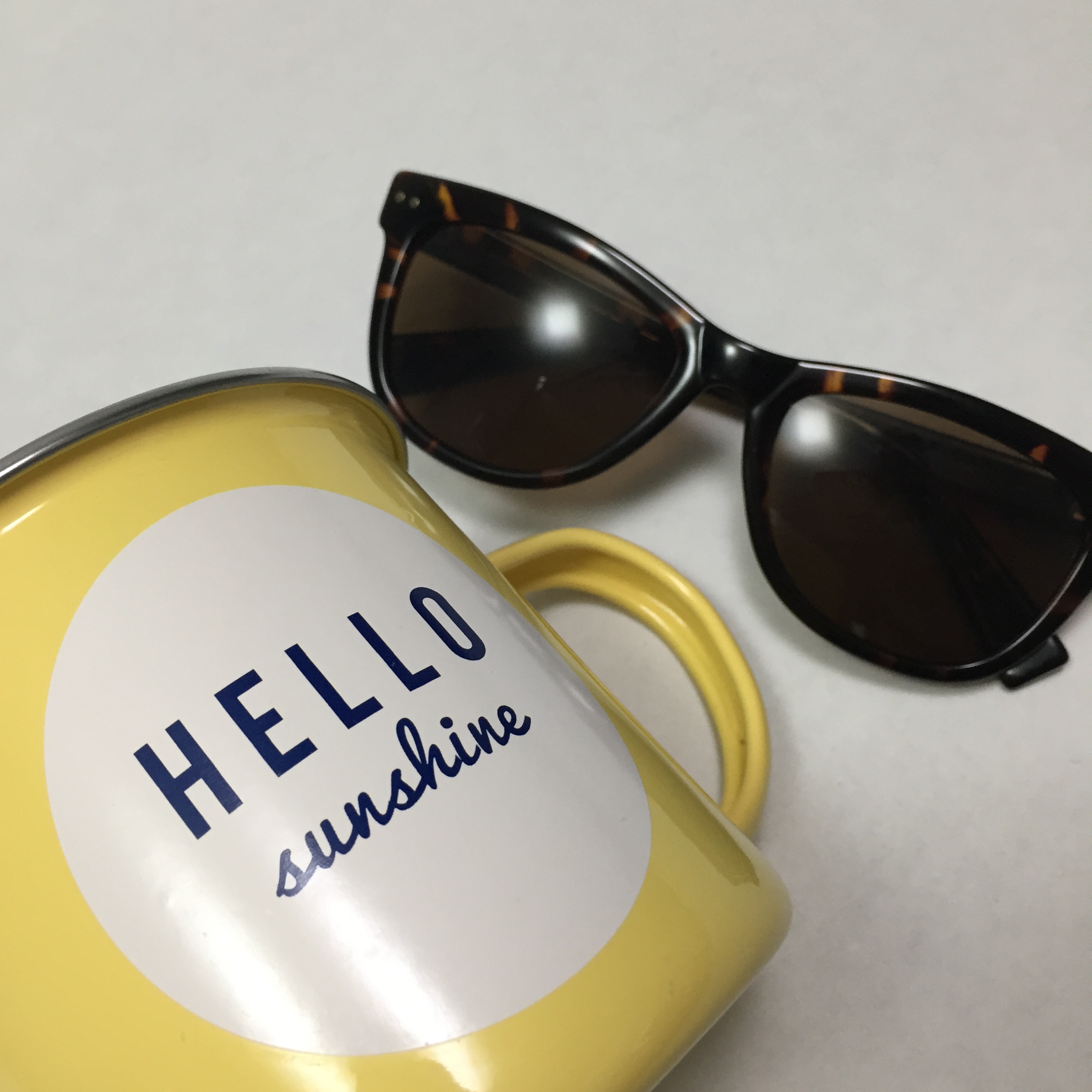 Lovin the shades, totally tempted to splurge! (I’m a sucker for a good sale too.) Cute yellow cup too- where’s it from??