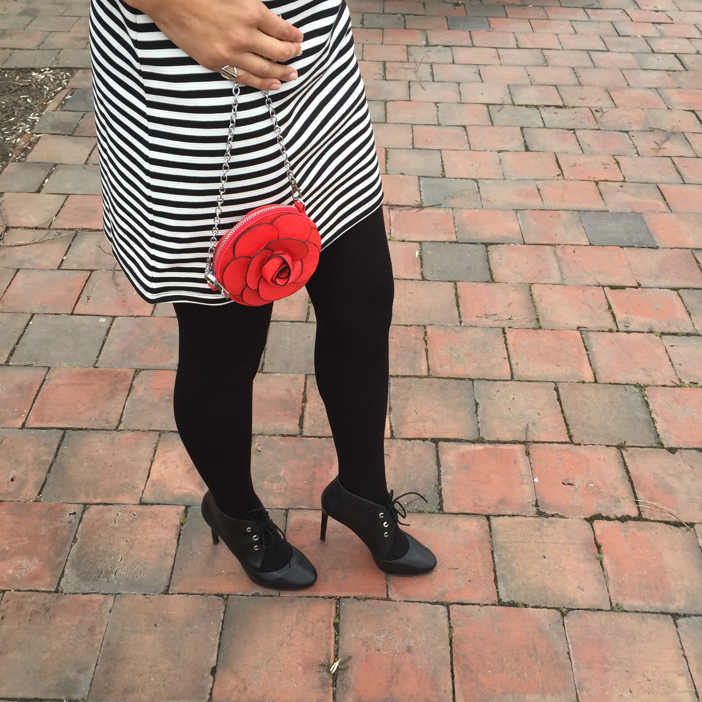 Dress: Old Navy, Similar here  |  Tights: TJMaxx  | Shoes: Nine West, Similar here  |
