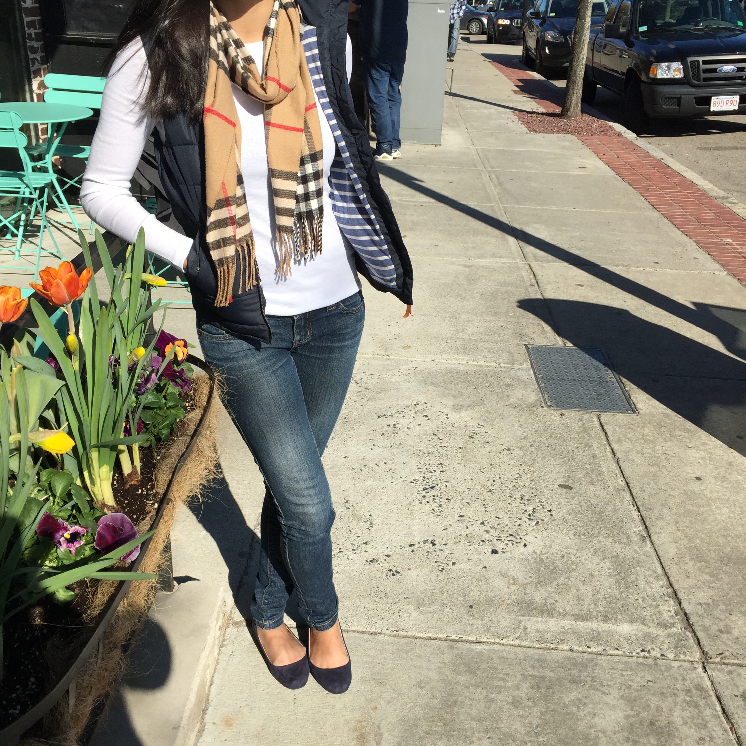 Top: Old Navy | Vest: H& M | Jeans: Old | Flats: H&M | Watch: Marc Jacobs, similar here | Sunglasses: Armani Exchange