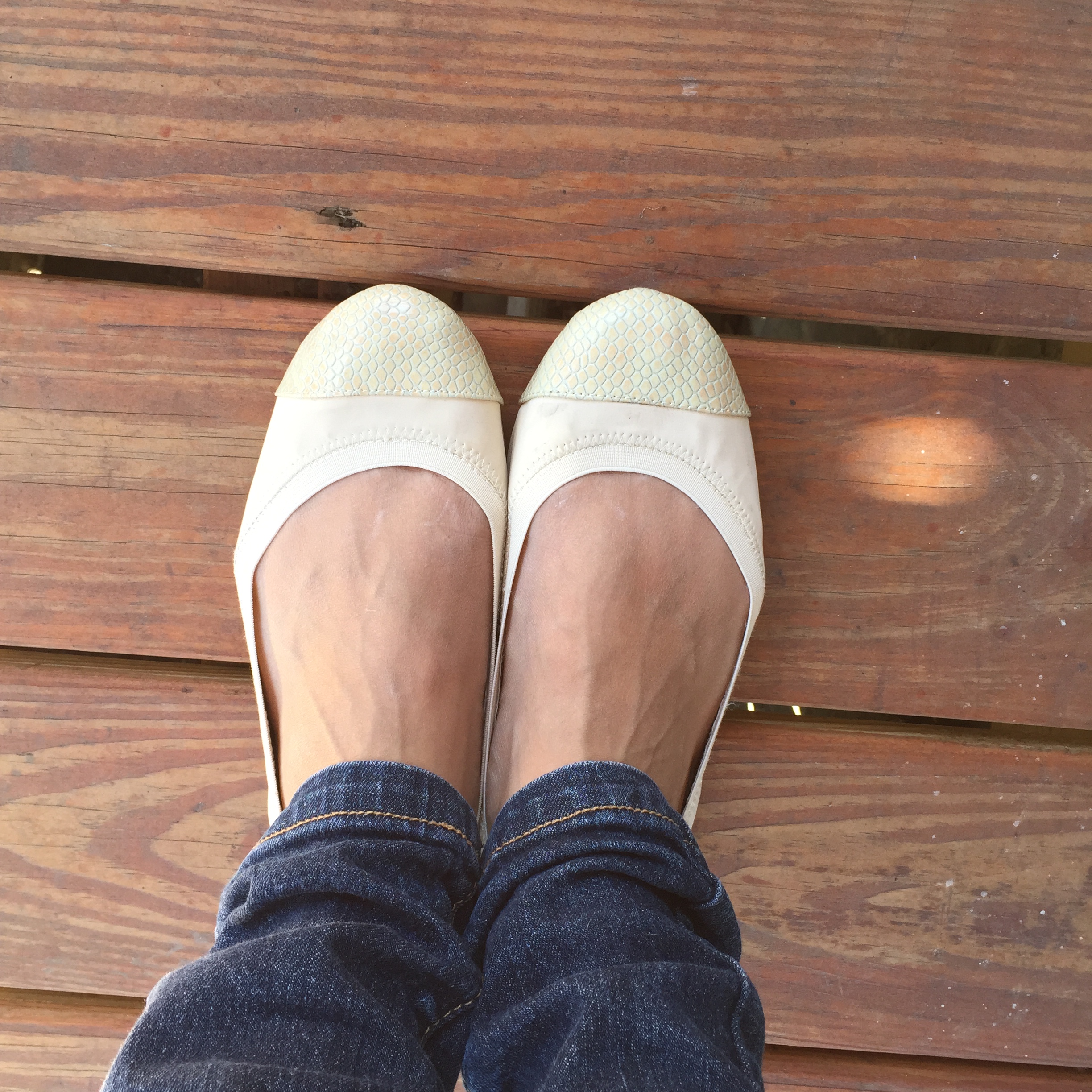 The details on the flats are a great texture and the neutral color is the perfect addition to any outfit. They also have the elastic edges which makes them comfortable and flexible to walk around in all day.