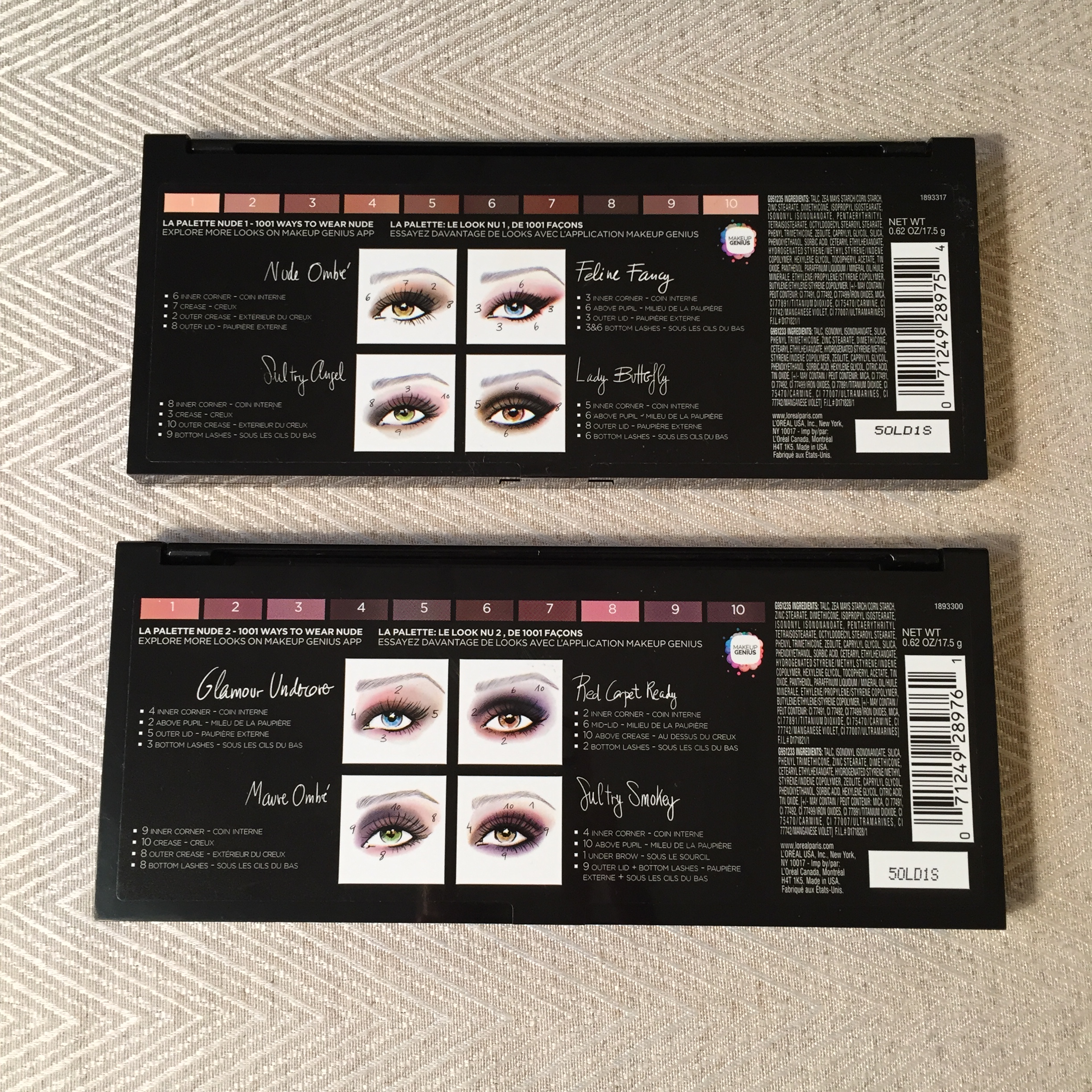 The back of the palette even has 4 look examples that you can execute with the palette along with numbering the shades and associating the numbers with where to apply to achieve the look.