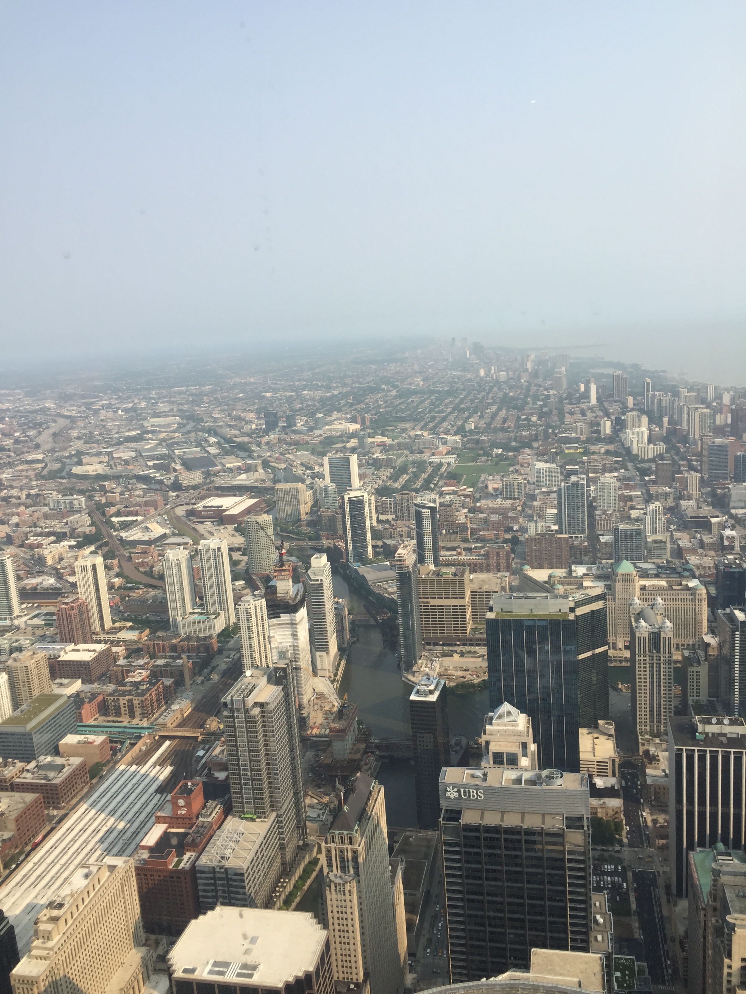 Following breakfast – immediately head over to the Willis Tower (formerly known as the Sears tower) which used to be the tallest building in the world! (#1 is now the World Trade Center) and make your way to the Sky Deck entrance. If you get there early in the morning, the line and wait isn’t so bad. We were on the Sky deck top floor in less than 15 minutes. According to some reviews I saw – the wait could be as long as three hours!! Take a picture on the Sky ledge that stands out over the city if you dare.