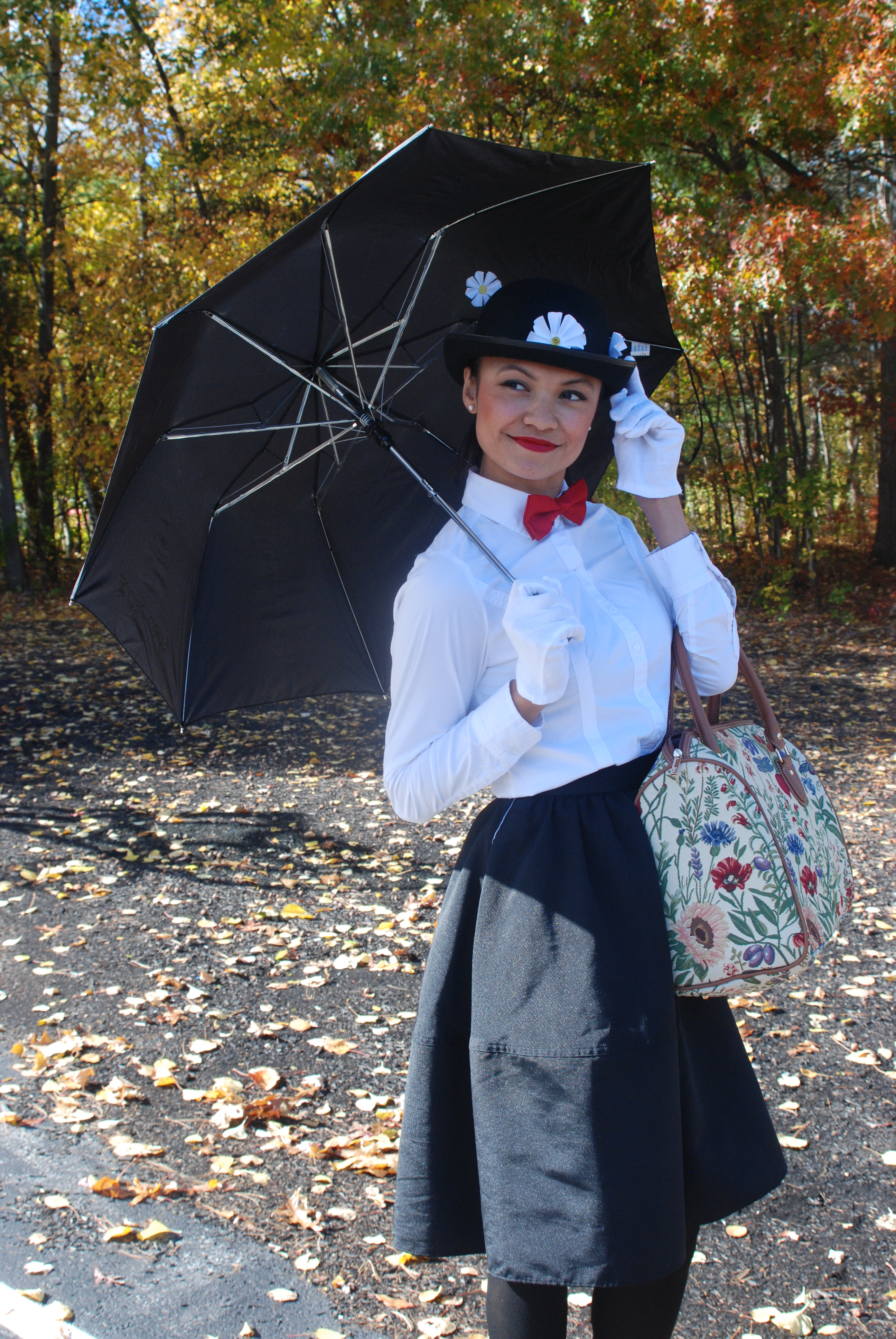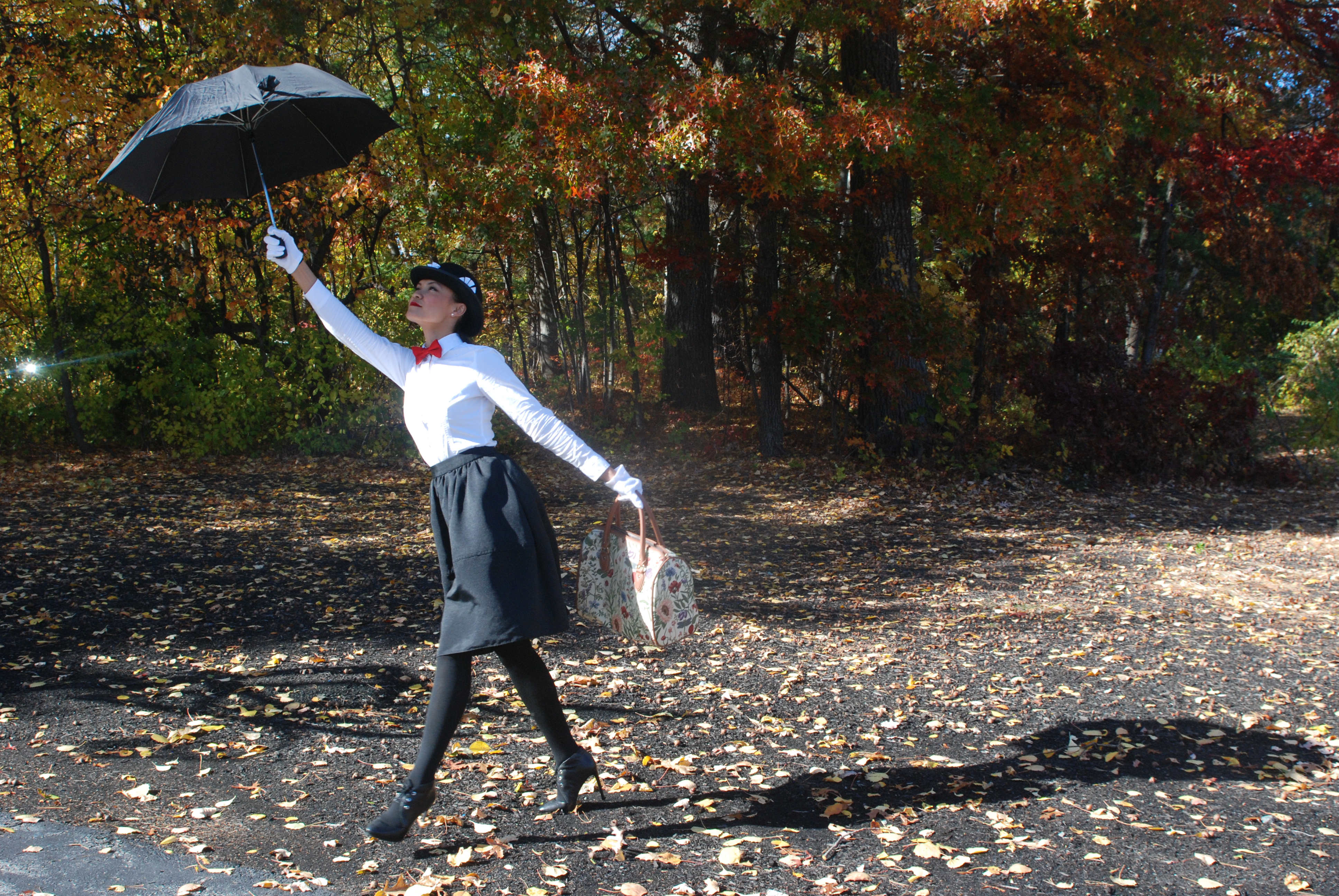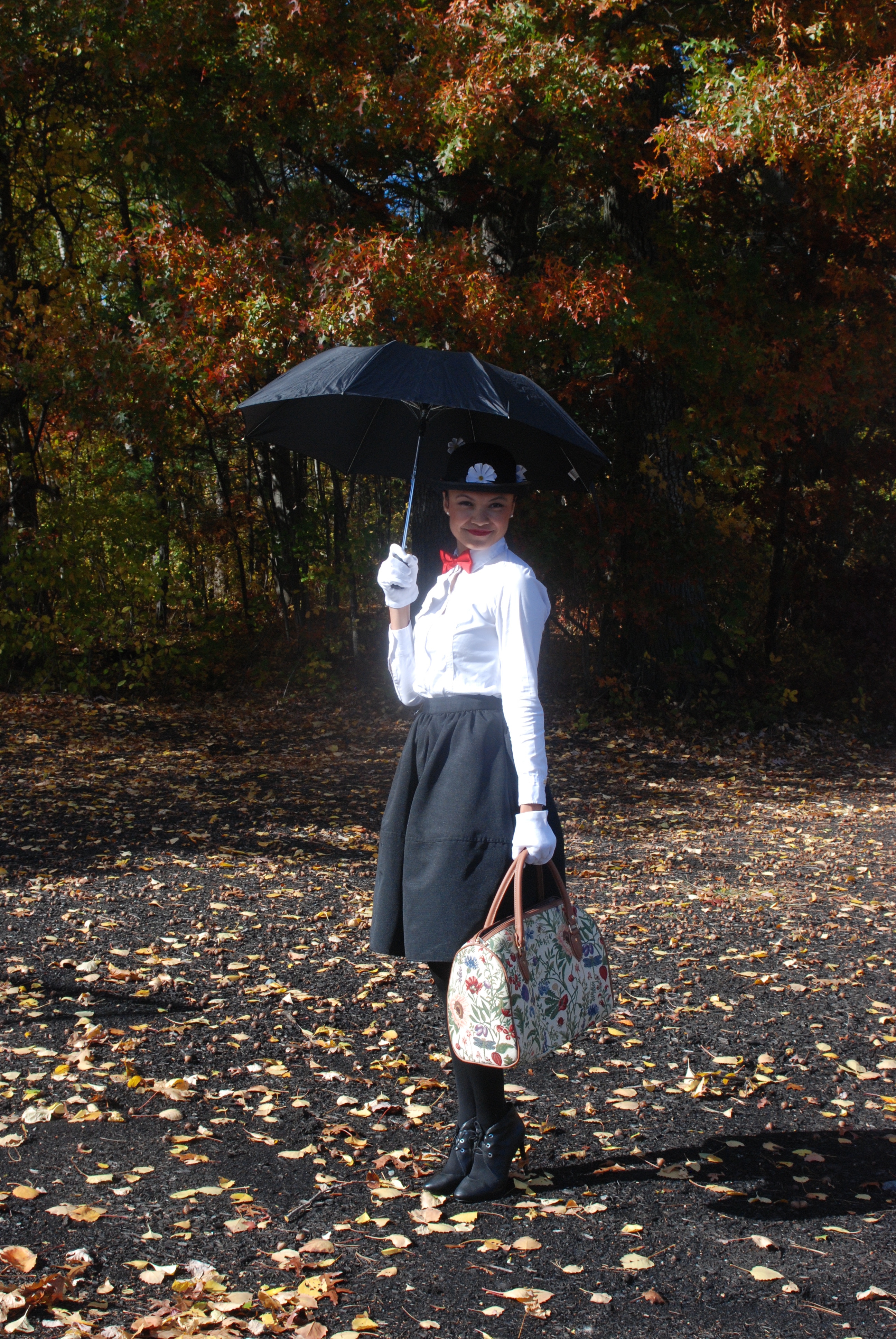 This year I decided to not purchase one of the “bagged costumes” for a change and try to put my creative juices to work. “What do I have in my closet that could work as a costume?!” After some research on Pinterest – Mary Poppins sounded like a fun choice that was within the possibility of execution. DONE! And I lovvveeee it!