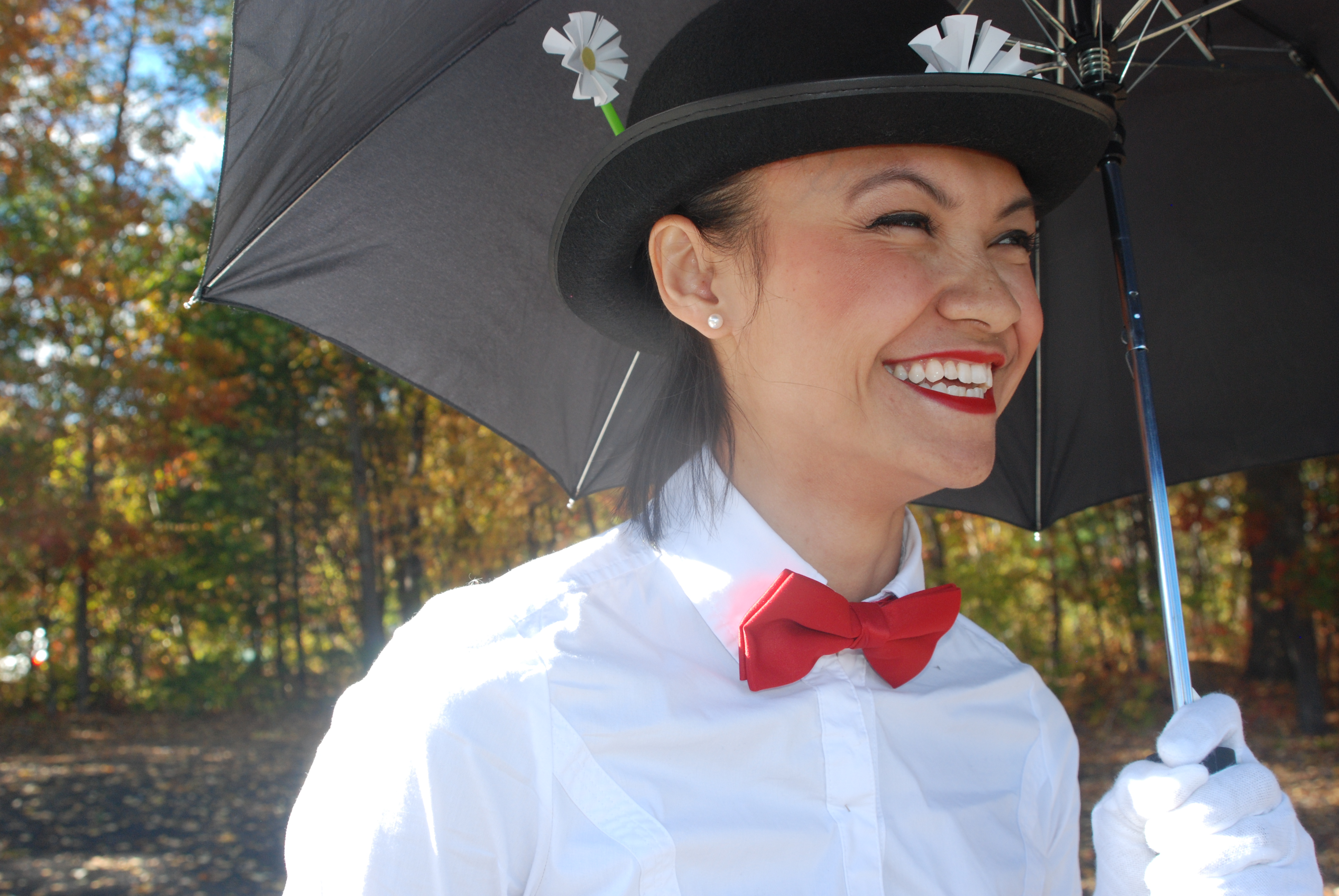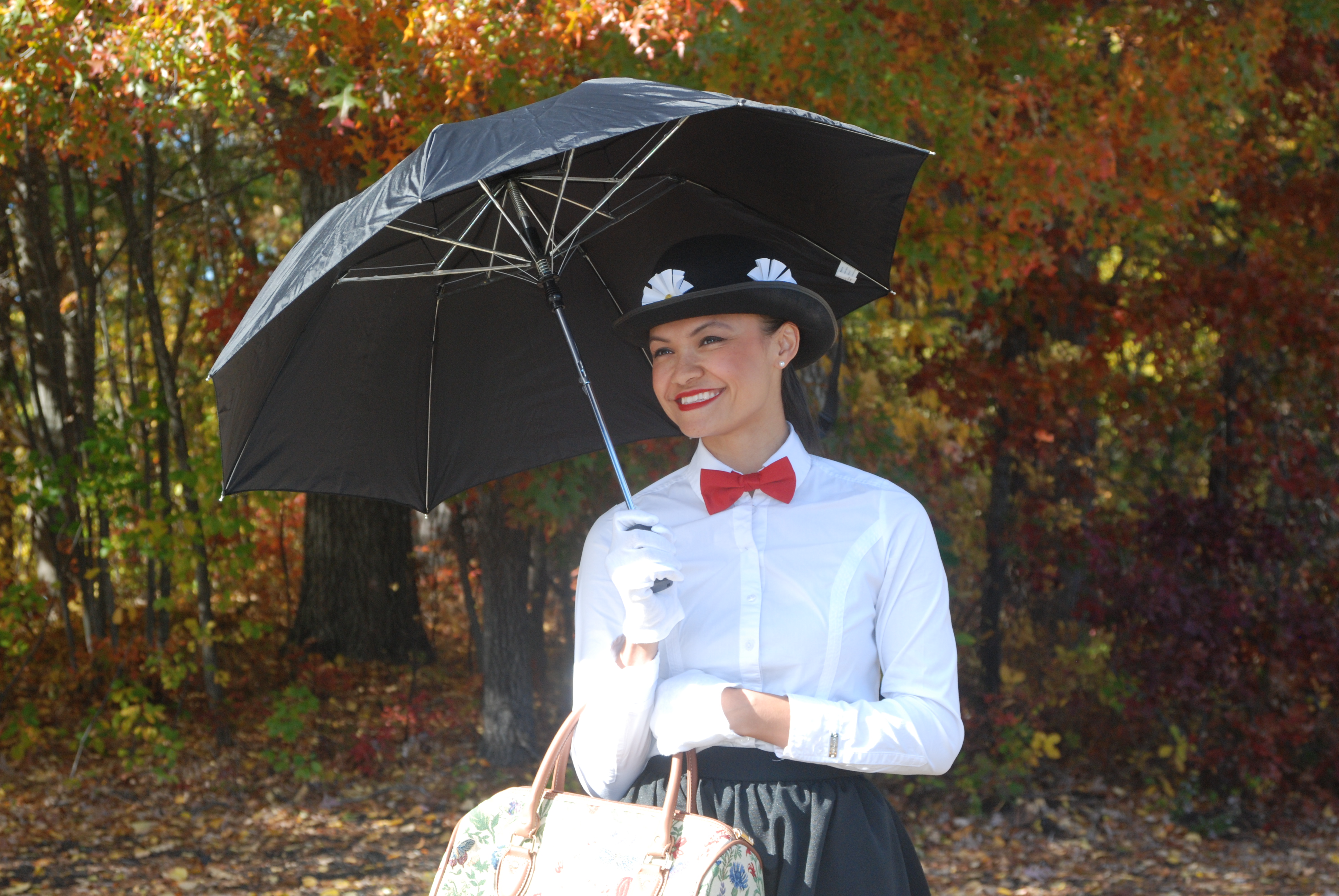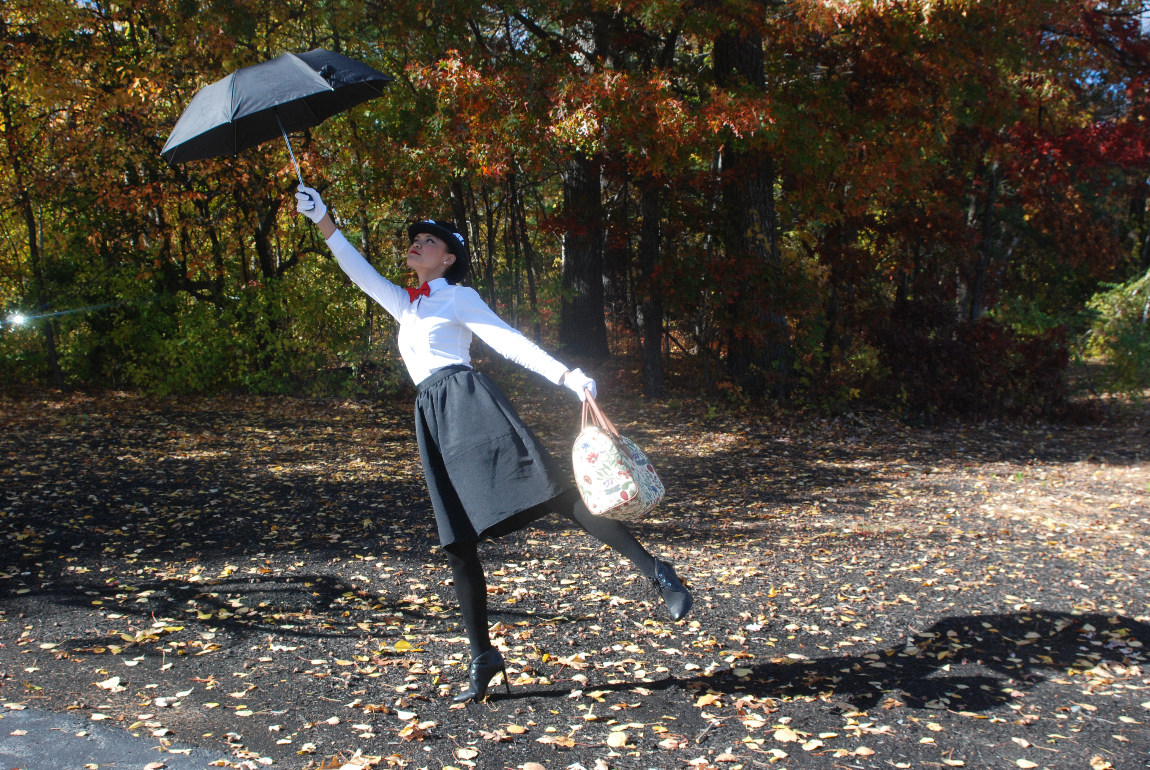 This year I decided to not purchase one of the “bagged costumes” for a change and try to put my creative juices to work. “What do I have in my closet that could work as a costume?!” After some research on Pinterest – Mary Poppins sounded like a fun choice that was within the possibility of execution. DONE! And I lovvveeee it!