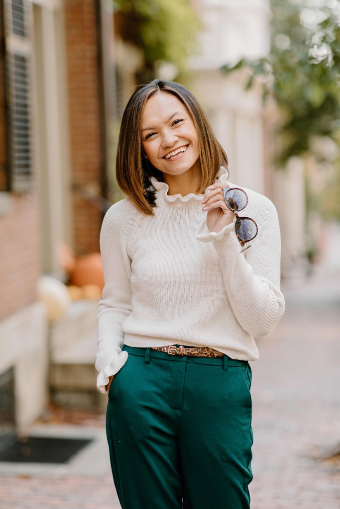 I love STRUCTURE. I especially like pieces that air on the slightly dramatic side like this ruffle collar sweater. It looks super high end because of the ruffle detail and it was under $25. On top of being super chic and delicate, it is from H&M’s Conscious Clothing line where they use recycled materials to make the products. This sweater is made from 50% recycled polyester!! Who knew recycling could look and feel so good?
